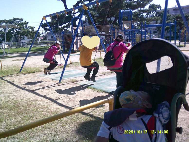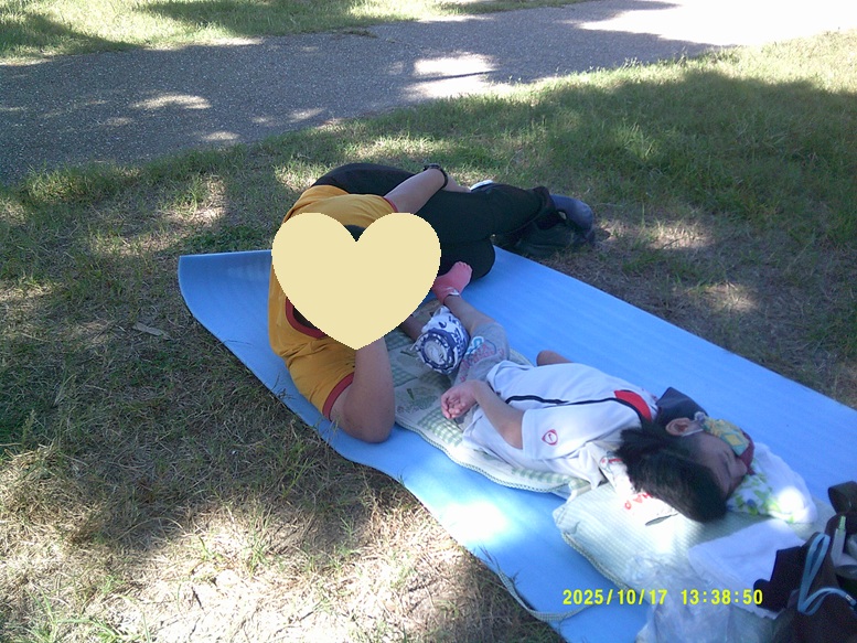10月17日、近隣の公園に行き、遊具で遊び昼食後少し昼寝(笑)。当日はとても暑かったですが、木陰は風があり涼しくて体で秋を感じる事が出来ました(^^)/